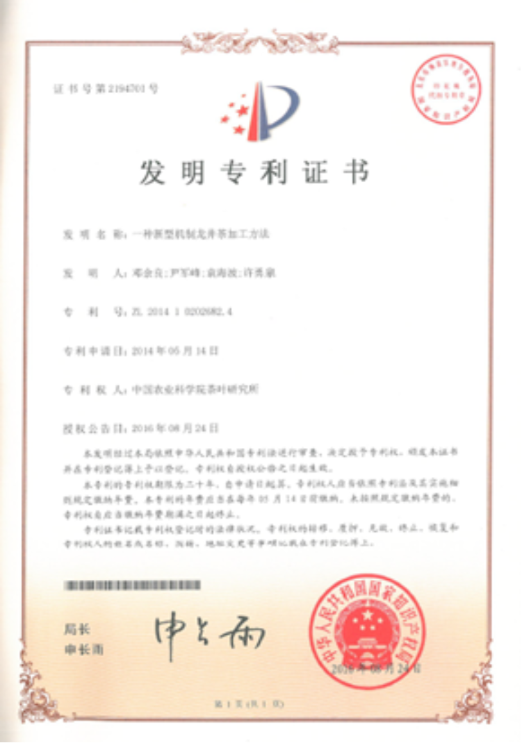 一種新型機制龍井茶的加工方法(ZL201410202682.4)