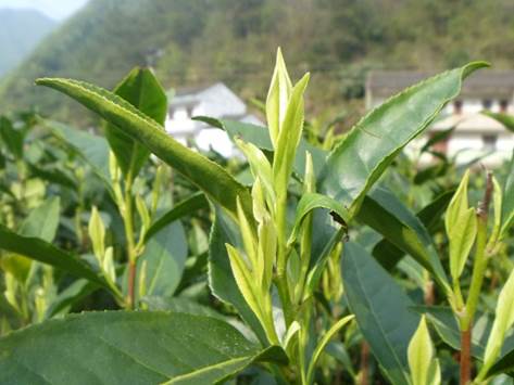 特征:樹姿直立,分枝密。葉片披針形,向上著生,成熟葉色綠,葉面微隆起,葉身內(nèi)折,葉基楔形,葉尖漸尖,葉緣微波,葉質(zhì)較厚。芽葉肥壯,新梢茸毛較少。春季芽葉乳白色,隨著新梢長到一芽四、五葉開始逐漸轉(zhuǎn)綠,夏、秋季新梢芽葉乳黃色。
