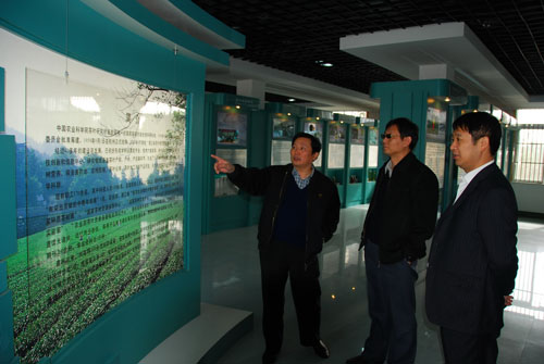 2007年11月27日上午,農業部科技發展中心副主任魏啟文和部人才中心副主任、農學會副秘書長胡一萍來所考察,楊亞軍所長和陳直書記介紹了茶葉所情況,他們還參觀了科研樓、實驗茶園、所展覽室。