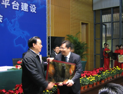 2006年11月22日, 浙江省召開重大科技創(chuàng)新平臺(tái)建設(shè)啟動(dòng)大會(huì),“浙江省茶產(chǎn)業(yè)科技創(chuàng)新服務(wù)平臺(tái)”等13個(gè)重大科技創(chuàng)新平臺(tái)正式啟動(dòng)。我所楊亞軍所長(zhǎng)代表平臺(tái)牽頭單位接受了呂祖善省長(zhǎng)授予的“浙江省茶產(chǎn)業(yè)科技創(chuàng)新服務(wù)平臺(tái)”銅牌,并與共建單位正式簽約。