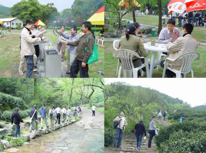 同時,大家還開展了品茶、聽泉、燒烤等多種有益的趣味活動,然后沿著九溪十八澗的鄉間小道,登上了山花爛漫的五云山,盡情地欣賞大自然的美麗風光。