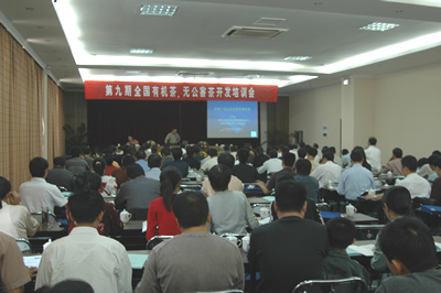 2005年10月9~12日,“第九期全國有機茶、無公害茶開發培訓會”在福建省武夷山市隆重舉行。本次培訓會由福建省農業廳、中國農業科學院茶葉研究所和杭州中農質量認證中心(OTRDC)主辦,福建農林大學茶學系和福建省農業科學院茶葉研究所協辦,南平市農業局和武夷山茶業管理委員會承辦。中國農業科學院茶葉研究所黨委書記陳敘達、福建省農業廳種植業管理局局長洪來水、武夷山市副市長盧善土出席培訓會并講話。來自福建、廣東、廣西、河南、湖北、江蘇、江西、上海、四川、云南、浙江等省市自治區共140余名學員參加本次培訓。此次培訓會正值有機產品國家標準等規章實施,部分已多次參加過培訓會的學員再次報名參會,學習熱情不減。