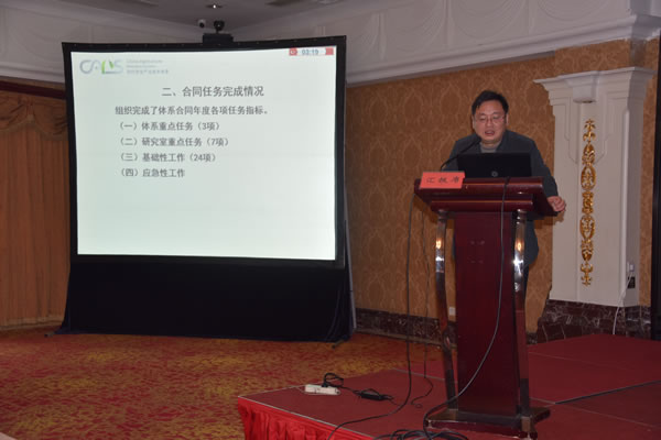首席科學家楊亞軍研究員匯報了體系年度工作進展,他從對產業的支撐情況、合同任務完成情況、扶貧工作情況、體系組織管理工作情況、經費使用情況5個方面全面總結了2017年體系開展的各項工作和取得的主要成績。隨后,各研究室主任、崗位科學家和試驗站站長分別進行了述職匯報。