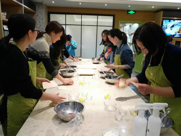 活動現場邀請了專業烘焙老師為大家講授烘焙知識和技能。在烘焙老師的指導下,大家都躍躍欲試,饒有興致地邊學習邊制作。現場充滿了食物烘焙的香氣,歡聲笑語、其樂融融。大家在動手制作糕點的過程中,享受著參與創作的樂趣,在點心香甜的味道中得到了身心的徹底放松。