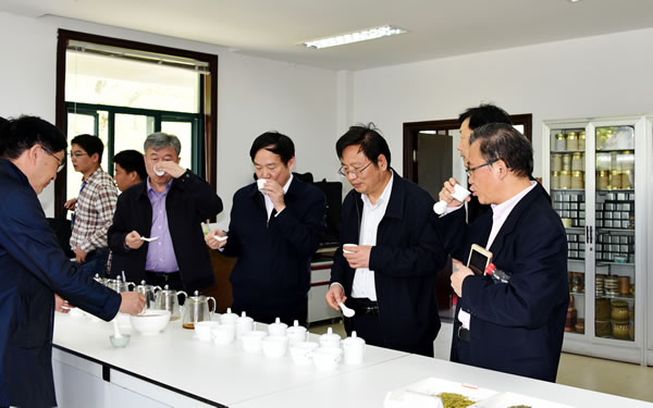 正值茶季,徐部長(zhǎng)一行還饒有興致地參觀了龍井茶炒制車間,龍冠公司姜愛芹總經(jīng)理匯報(bào)了公司的生產(chǎn)情況。