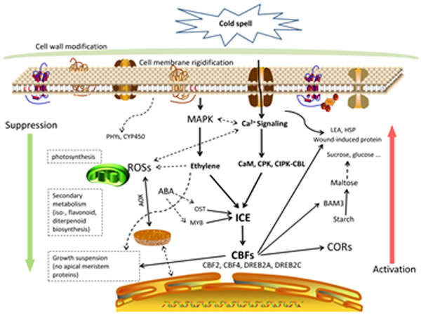 圖3 茶樹新梢響應倒春寒低溫的分子調控模型