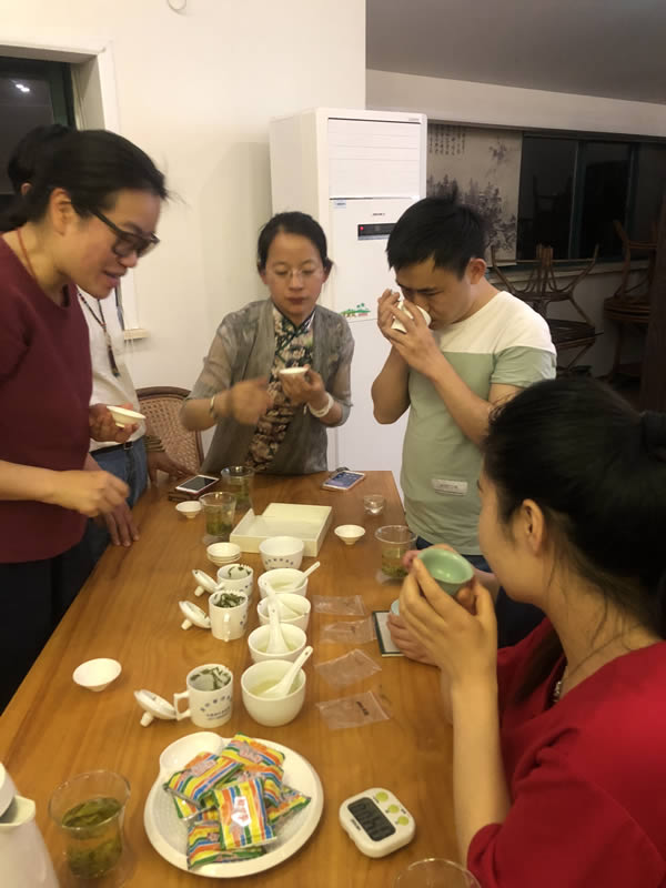 本次茶會(huì)以綠茶審評(píng)為主題,特邀我所茶葉質(zhì)量標(biāo)準(zhǔn)與檢測(cè)技術(shù)研究中心青年感官審評(píng)專家、中國(guó)茶葉學(xué)會(huì)茶葉感官審評(píng)與檢驗(yàn)專業(yè)委員會(huì)副秘書長(zhǎng)張穎彬?yàn)榇蠹沂谡n,講解六大茶類及茶葉分類的基礎(chǔ)知識(shí),組織大家現(xiàn)場(chǎng)體驗(yàn)茶葉專業(yè)審評(píng)流程,并對(duì)4個(gè)綠茶茶樣進(jìn)行分組評(píng)鑒。
