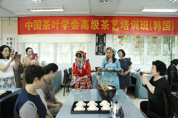 32名韓國學員在來到中國之前,便已修習了中國茶葉學會常務副秘書長周智修研究員教授的初、中級茶藝課程。此次高級茶藝班的茶藝技能課則以民族茶藝為主,同樣由周老師親自授課。中國56個民族,茶俗內容各具特色,各呈風采,學員們對這些豐富又具有中華民族特色的茶文化十分感興趣,學習熱情高漲。