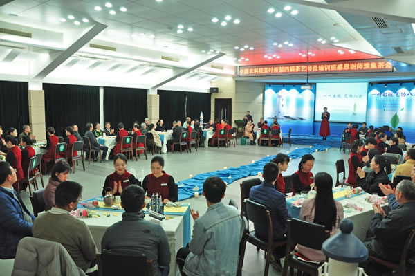 12月6日上午,由我所和中國茶葉學(xué)會聯(lián)合主辦的第四屆茶藝師資培訓(xùn)班感恩謝師畢業(yè)雅集茶會在杭舉行。本次茶會以“一葉啟航 藝傳八方”為主題,邀請了中國國際茶文化研究會常務(wù)副會長、杭州市原市長孫忠煥先生,浙江省職業(yè)技能鑒定中心吳藺副主任,浙江省人力資源和社會保障廳職業(yè)能力建設(shè)處黃曉紅副處長,中國茶葉博物館吳曉力館長等領(lǐng)導(dǎo)、任課教師、茶友及媒體代表共計(jì)100余人,共品佳茗,回首習(xí)茶路,感念師恩情,揚(yáng)帆再起航。