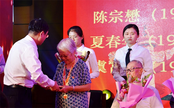 我所共有10位老同志獲得紀念章,他們是:吳麗華、鄭如新、徐耀東、陳瑞鋒、陳宗懋、李名君、夏春華、俞永明、虞富蓮、王玉書。這些老同志們長期奮斗在茶葉科技工作一線,都在平凡的工作崗位上忘我工作、無私奉獻,都對茶產業事業矢志不渝,傾注了大量的心血,對促進我國茶產業發展作出了重要貢獻。