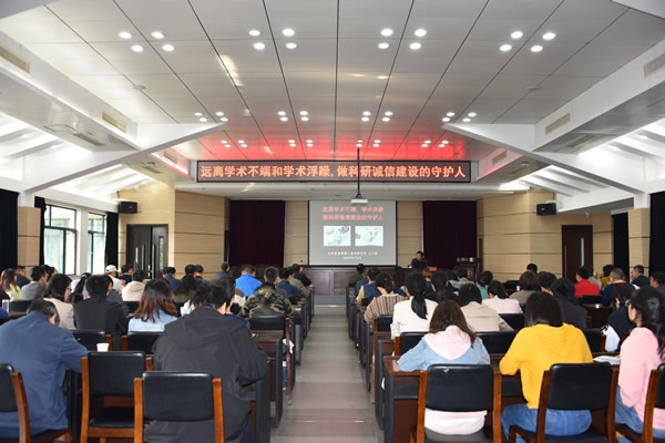 王小波書記圍繞什么是學(xué)術(shù)不端行為、全球各國學(xué)術(shù)不端行為表現(xiàn)、中國學(xué)術(shù)不端背后的誠信缺失、以及如何營造良好的科研生態(tài)等作了講解。王書記通過對國內(nèi)外典型案例的剖析,指出偽造科研數(shù)據(jù)、抄襲侵占他人學(xué)術(shù)成果、篡改實驗數(shù)據(jù)等學(xué)術(shù)不端行為嚴重敗壞科研工作者的聲譽,阻礙科學(xué)進步發(fā)展,同時也損害了社會公共利益。他強調(diào),作為科研工作者要深刻領(lǐng)會遵守科研誠信和學(xué)術(shù)道德的重要意義,提高思想認識,信守科研道德,大力弘揚科學(xué)家精神,自覺抵制學(xué)術(shù)不端行為,營造良好的科研生態(tài)環(huán)境。