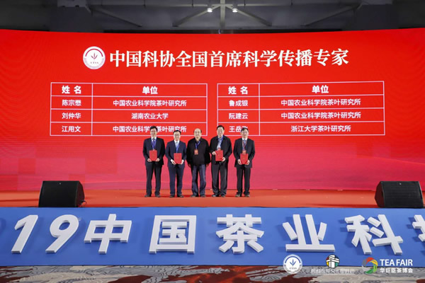 除了精彩的報(bào)告,還舉辦了“科技成果交流會(huì)”“茶學(xué)畢業(yè)生人才信息交流會(huì)”,展示茶葉科技新成果50余項(xiàng),推介16 家高校科研院所,分享了15所高校500份茶學(xué)應(yīng)屆畢業(yè)生簡(jiǎn)歷。年會(huì)上,還為第六屆中國(guó)茶葉學(xué)會(huì)科學(xué)技術(shù)獎(jiǎng)和青年科技獎(jiǎng)獲獎(jiǎng)代表頒發(fā)了證書(shū)和獎(jiǎng)杯,為陳宗懋院士、劉仲華院士、江用文研究員、魯成銀研究員、阮建云研究員、王岳飛教授等6位中國(guó)科協(xié)全國(guó)首席科學(xué)傳播專(zhuān)家頒發(fā)聘書(shū),為新成立的中國(guó)茶葉學(xué)會(huì)專(zhuān)家工作站和學(xué)會(huì)服務(wù)站授牌。
