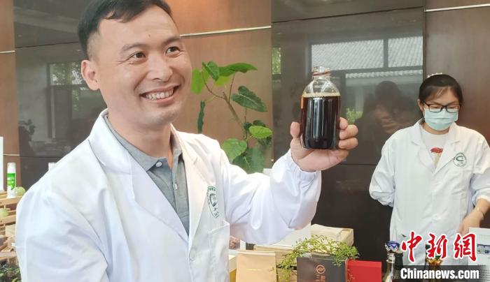 茶深加工與多元化利用團(tuán)隊(duì)成果轉(zhuǎn)化負(fù)責(zé)人展示新產(chǎn)品。 胡丁于 攝