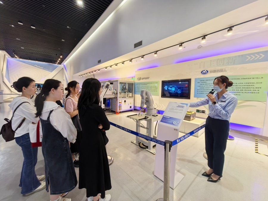 蕭山機器人博展中心是浙江省首個機器人專業(yè)展示體驗中心,是展示機器人科技前沿水平的重要平臺。在講解員的帶領下,大家走進博展中心,沉浸式體驗前沿科技,感受中國智造的魅力,點贊新時代青年的擔當。跳舞機器人、消防機器人、書法機器人和3D打印等“現(xiàn)場表演”,讓大家紛紛贊嘆,同時感受到中國在機器人領域取得的飛速進步與巨大成就。