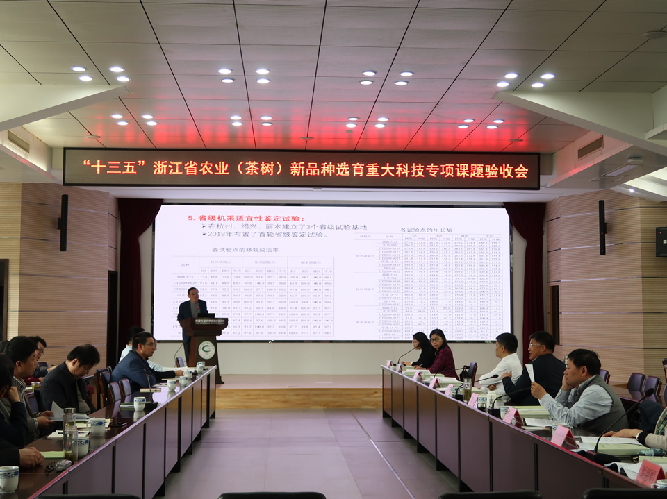 受浙江省科技廳委托,3月26-27日,由我所牽頭的浙江省“十三五”農業(茶樹)新品種選育重大科技專項課題驗收會在我所召開。驗收會由協作組首席專家楊亞軍研究員主持,各課題主持人及科研骨干共30余人參加了會議。浙江省科技廳農村處錢玉紅處長到會指導。