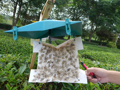 2010年前后,陳宗懋團(tuán)隊(duì)發(fā)現(xiàn)我國(guó)茶園常用的黃色粘蟲板顏色差異大,缺乏靶標(biāo)針對(duì)性,不同產(chǎn)品的誘殺效果參差不齊。他提出通過可數(shù)字化的顏色篩選茶小綠葉蟬最佳誘捕色,研發(fā)出了茶小綠葉蟬、茶棍薊馬等害蟲的數(shù)字化色板,并獲中國(guó)專利優(yōu)秀獎(jiǎng)。經(jīng)過大面積應(yīng)用之后,數(shù)字化單色板暴露出“殺敵一千自損八百”的缺點(diǎn),在使用過程中會(huì)殺傷一定數(shù)量的天敵昆蟲。為了解決這個(gè)問題,陳宗懋團(tuán)隊(duì)又從昆蟲視覺生理出發(fā),創(chuàng)制出天敵友好型雙色誘蟲板,降低了40%的天敵誤殺量。