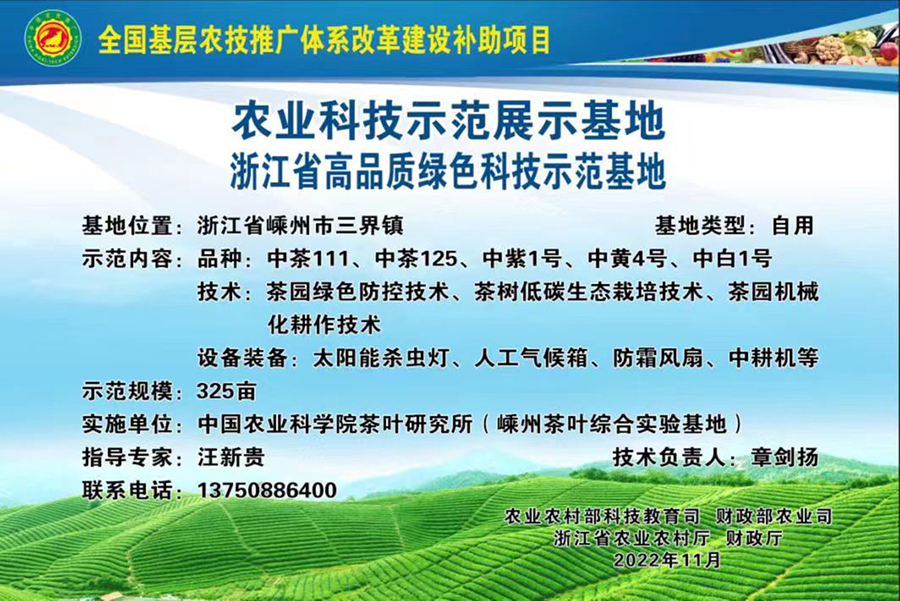 近日,嵊州市農(nóng)業(yè)農(nóng)村局印發(fā)了《關(guān)于確定2022年高品質(zhì)綠色科技示范基地建設(shè)單位的通知》,我所嵊州茶葉綜合實(shí)驗(yàn)基地入選。