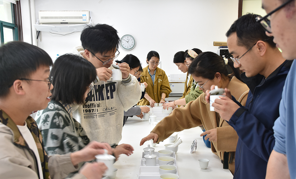啟動當日,所團總支邀請茶葉審評專家張穎彬副研究員為團員開展“春茶審評”活動,共有20余人參加。活動中,張穎彬向大家介紹了多地綠茶的風味特征,針對影響茶葉品質形成的主要因素進行了分析,并以西湖龍井作為春茶樣板,深入講解了西湖龍井的發展歷史、不同產區之間的區別以及如何選購性價比高的龍井茶。團員們還對六款西湖龍井和三款安吉白茶進行了審評學習。