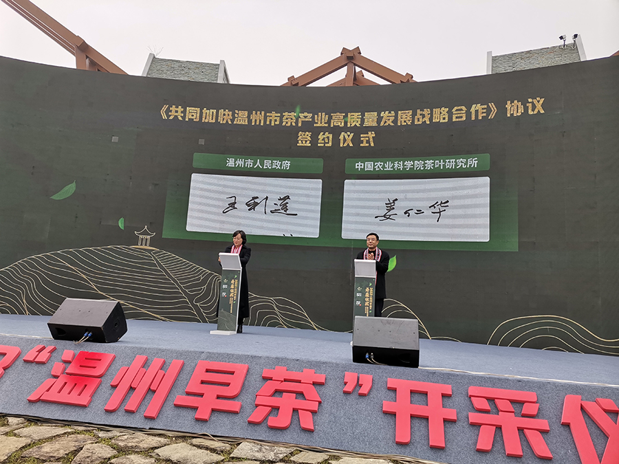 根據合作協議,我所與溫州市將依托研究院優先開展如下工作:編制溫州市茶產業中長期發展戰略規劃,開展溫州市茶葉品牌定位與推廣策劃,形成全面提升溫州茶葉發展質量的系統性解決方案;建立“國家茶葉全產業鏈大數據中心溫州分中心”等成果轉化載體,探索技術培訓與成果推廣新模式,聯合開展技術攻關;開展茶葉人才和綜合性服務,為溫州茶產業的高質量發展提供人才支撐。