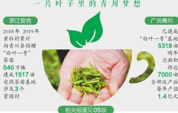 2018年4月,浙江安吉黃杜村20名農(nóng)民黨員給習(xí)近平總書記寫信,提出愿意捐贈1500萬株茶苗幫助貧困地區(qū)群眾脫貧。青川是四川省唯一的受捐縣。2018年、2019年,黃杜村累計向青川縣捐贈“白葉一號”茶苗540萬株,建成1517畝受捐茶苗基地,涉及沙州鎮(zhèn)青坪村、關(guān)莊鎮(zhèn)固井村、喬莊鎮(zhèn)瓦礫村3個貧困村。經(jīng)過精心培育,這批茶苗已長成致富茶。