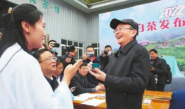 在采茶儀式后的品茶活動現(xiàn)場,茶藝師取出此前預(yù)制好的青川白茶泡好,倒出第一杯,敬給一位精神矍鑠的老人。老人叫白堃元,今年82歲,曾任中國農(nóng)業(yè)科學(xué)院茶葉研究所副所長。自1997年開始浙江對口幫扶廣元,派白堃元到青川,為種茶、制茶提供技術(shù)幫助。在浙川兩地間往來奔波25年,老人“手把手”將浙江優(yōu)勢茶產(chǎn)業(yè)“嫁接”到青川?!鞍兹~一號”茶苗進入青川后,白堃元又參與到白茶管護中。如今,茶產(chǎn)業(yè)已成為青川縣農(nóng)業(yè)“一號產(chǎn)業(yè)”,全縣茶葉種植面積達27.4萬畝。“口感不錯,鮮爽味很好。”喝下感恩茶,白堃元感慨,這些年目睹青川茶產(chǎn)業(yè)由小到大、由弱到強,“其中滋味酸甜苦辣,但今天品到的是回甘?!?/p>
