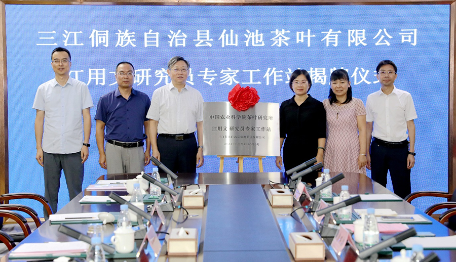 期間,我所與三江侗族自治縣仙池茶業(yè)有限公司共建的“江用文專家工作站”舉行了揭牌儀式。下一步,團(tuán)隊專家將圍繞加工技術(shù)創(chuàng)新、茶產(chǎn)品研發(fā)、加工技能人才培養(yǎng)等方面與仙池茶業(yè)有限公司開展緊密合作,在名優(yōu)綠茶提質(zhì)加工技術(shù)、工夫紅茶標(biāo)準(zhǔn)化加工技術(shù)等方面開展協(xié)同攻關(guān),深化科研成果的轉(zhuǎn)化落地,為鄉(xiāng)村振興注入“茶動力”,助力三江縣茶產(chǎn)業(yè)高質(zhì)量發(fā)展。