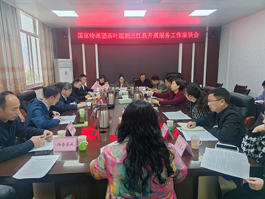實地調研后,江用文書記一行參加了縣政府組織的座談會,確定茶樹新品種引進示范、茶園害蟲綠色防控、茶葉標準化加工、技術培訓等6項科技幫扶任務,并明確了任務分工和進度安排。江用文書記表示,三江縣生態(tài)環(huán)境優(yōu)、茶產業(yè)基礎好,國家科技特派團茶葉產業(yè)組將發(fā)揮人才、科技優(yōu)勢,為三江縣提供科技支撐,助推三江縣茶產業(yè)高質量發(fā)展。吳明煥副縣長對專家組高效開展科技幫扶,有力促進三江茶產業(yè)發(fā)展表示感謝,并表示今后將為專家組工作開展提供保障。