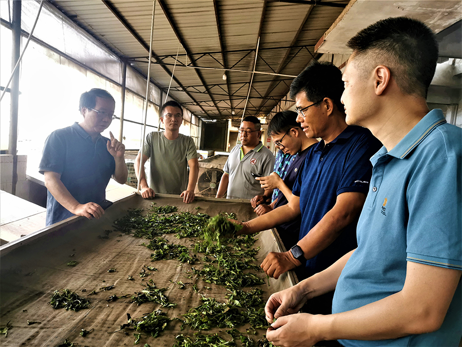 在江城縣政府副縣長周宏偉、涂俊奇的陪同下,專家組先后前往大過嶺茶業有限公司、牛洛河茶業有限公司、明子山茶業有限公司、田房村古樹茶葉種植專業合作社等茶企和茶園生產基地開展調研,并就茶園管理、綠色生態茶園建設、茶葉加工設備升級改造和加工工藝提升等進行了實地指導。
